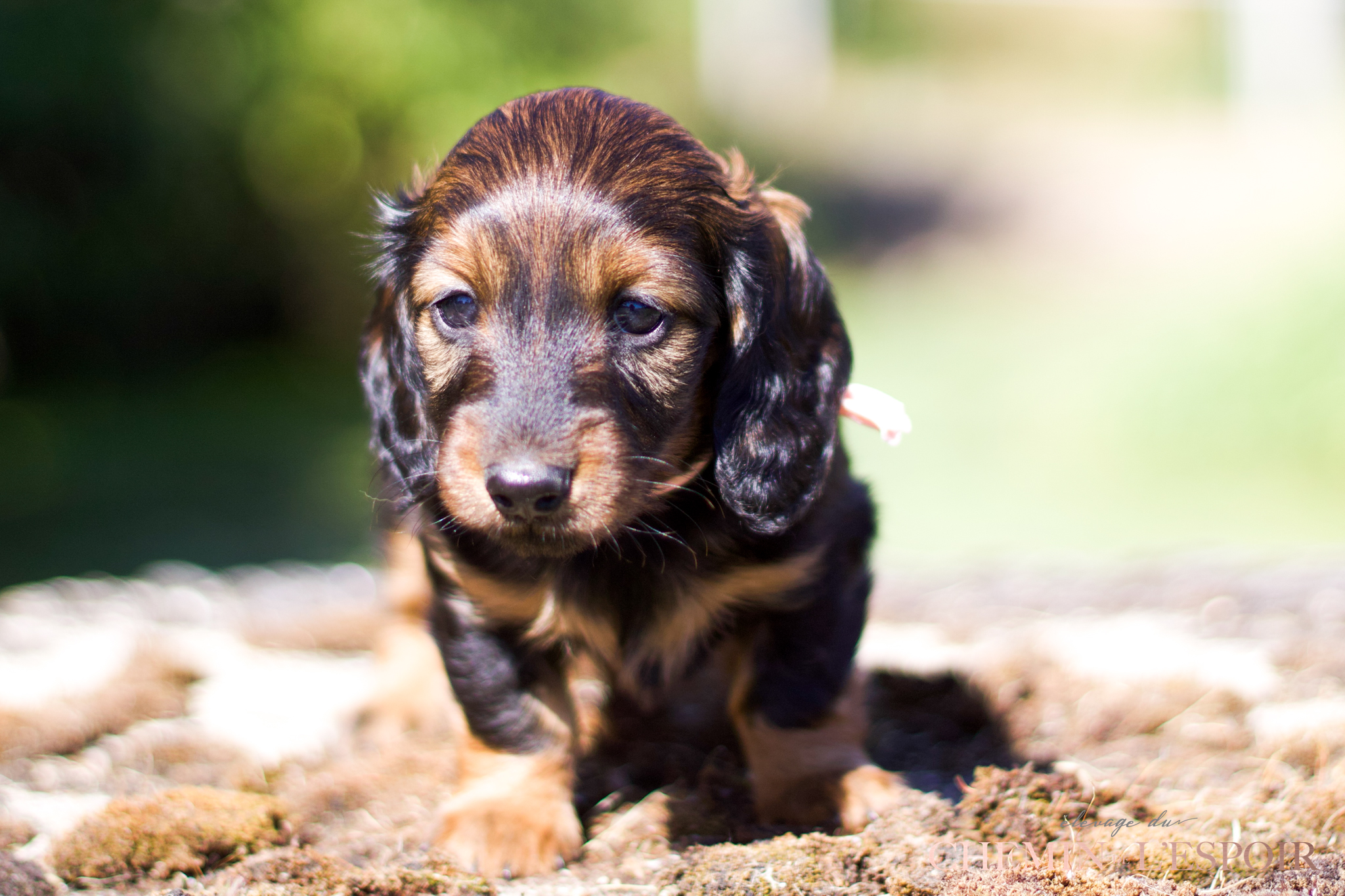 J’ai grandi entourée de teckels à poils durs, avec le rêve d’avoir un jour une teckel kaninchen blonde à poils durs. Mais tout a changé le jour où j’ai découvert la photo d’un chiot teckel nain à poils longs fauve, Miss Bella. Ce fut un coup de foudre immédiat, et bien qu’elle soit partie trop tôt, elle a marqué le début de ma passion pour les poils longs.